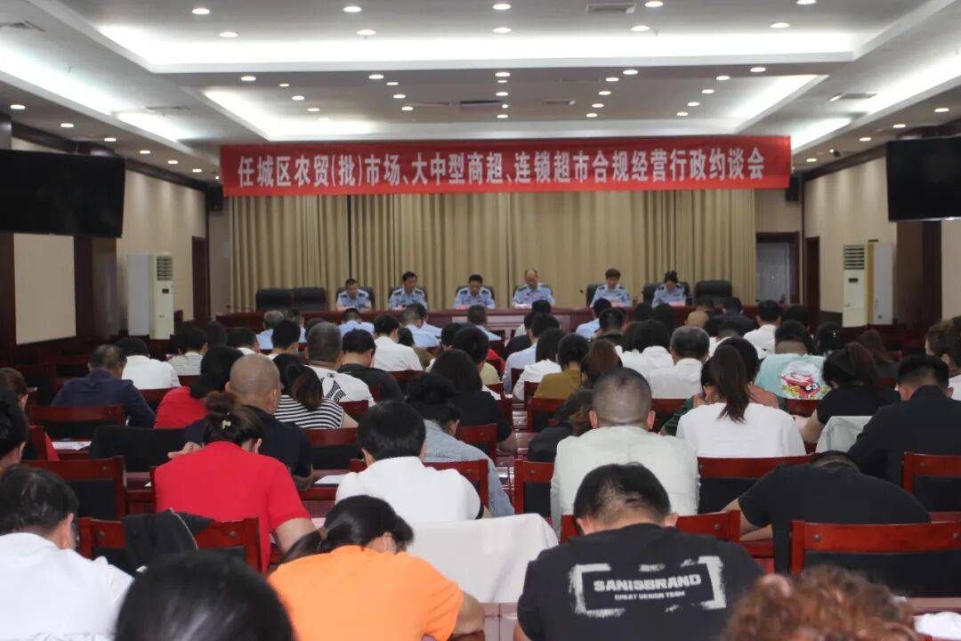 任城区市场监视办理局组织召开了农贸(批)市场、大中型商超、连锁超市合规运营行政约谈会。会议正在永基城?。